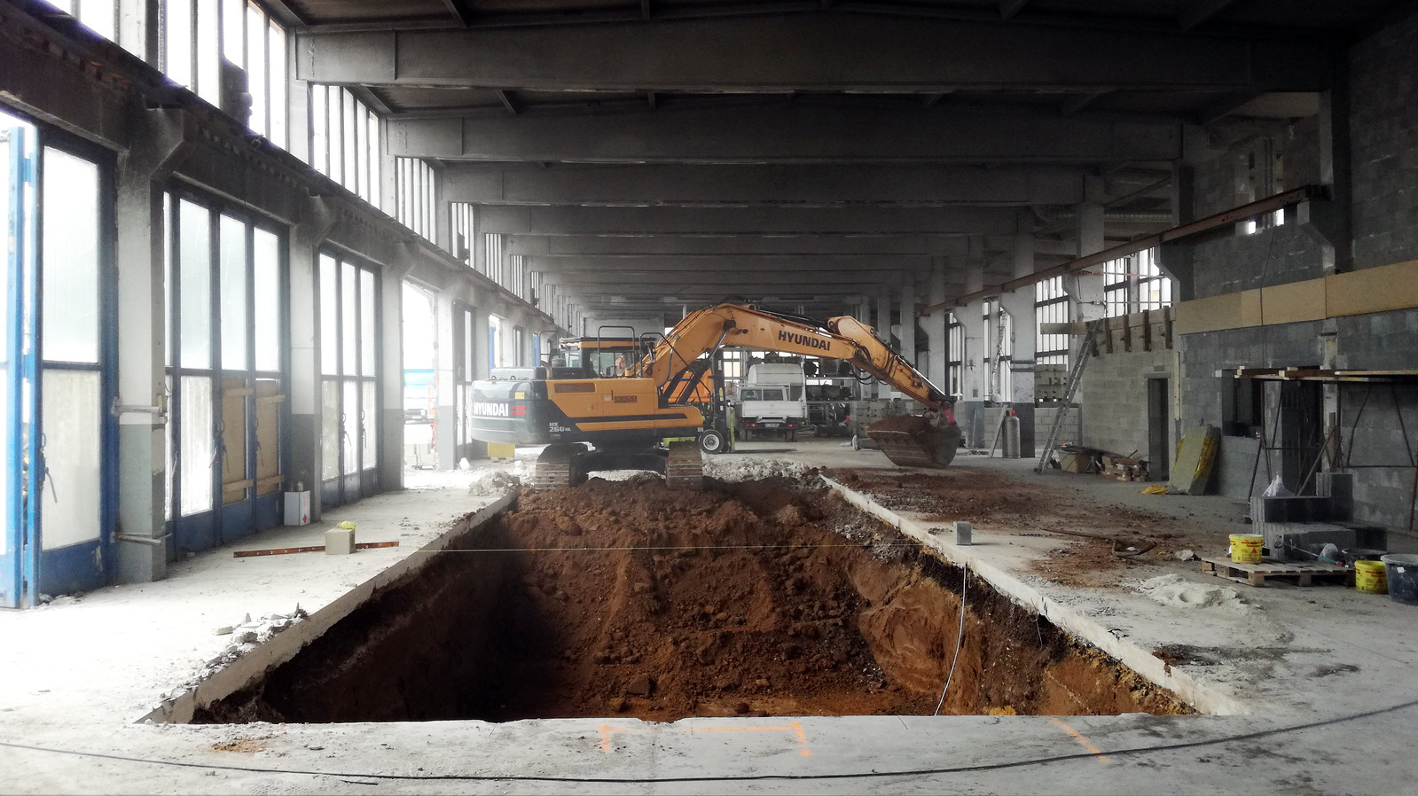 Nach mehr als 30 Jahren stand die Reanimation als Werkstatt für LKW auf dem Programm, und dies ist nun ein erster Einblick. Die Halle verfügt jetzt wieder über eine Grube, sowie eine Kranbahn.