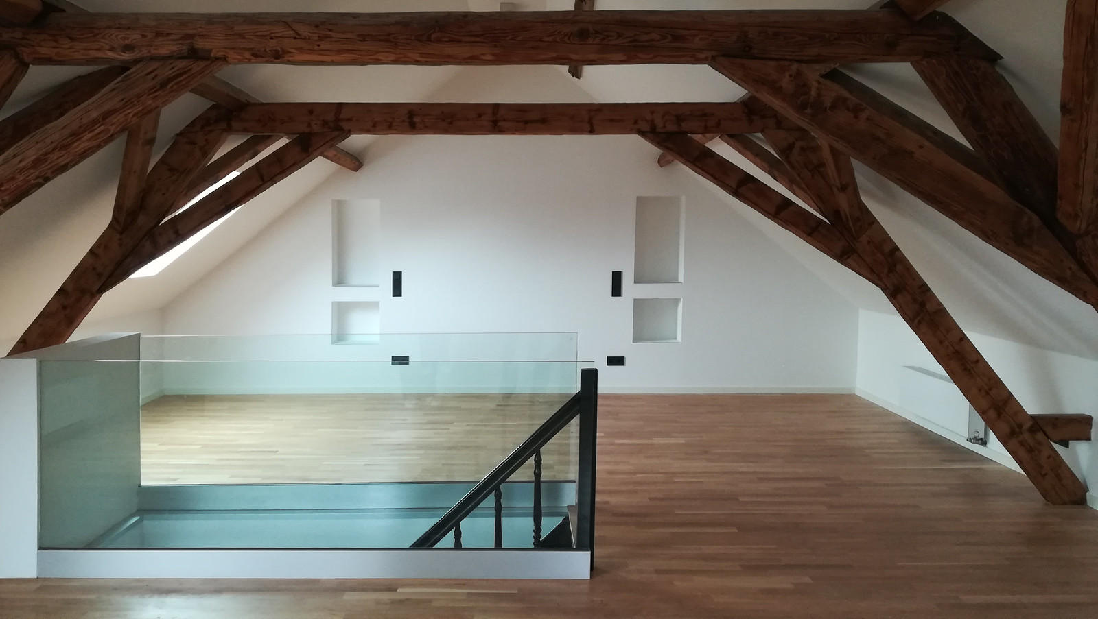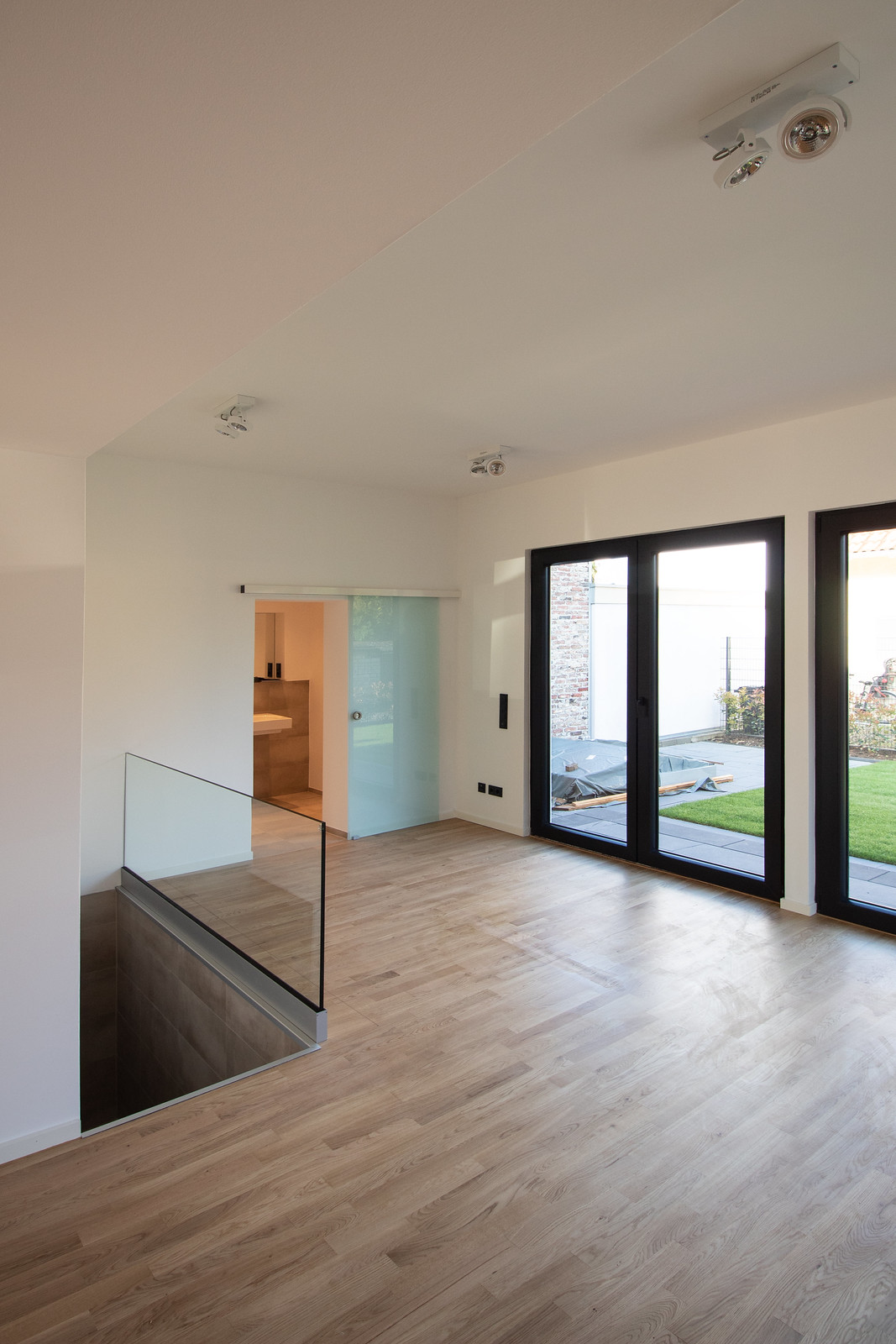 Aus dunkel wurde hell, aus eng wurde großzügig. Ganz nach dem Prinzip „der Raum muss atmen“ wurde aus einem muffigen 70er Jahre Haus mit klassischen Holzpaneelen an der Decke und dem obligatorisch grünen Badezimmer, ein helles, offenes Raumkonzept, welches je nach Bedarf genutzt werden kann.