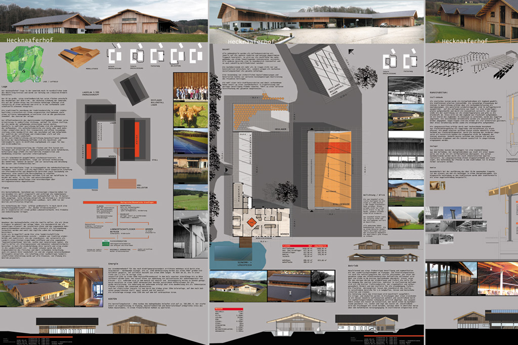 Neubau einer landwirtschaftlichen Hofanlage zur Rinderzucht. Das neue Hofgelände wurde im Aussenbereicherrichtet und liegt am Berghang der höchsten Mucher Erhebung „Heckberg“. Das Hofensemble setzt sich aus verschiedenen Hallenbauten zusammen, die um einen Innenhof angeordnet sind. Der sogenannte Offenfrontstall ist talseitig orientiert. Wohngebäude, Fahrzeug- und Maschinenhalle sowie das Heulager bilden den